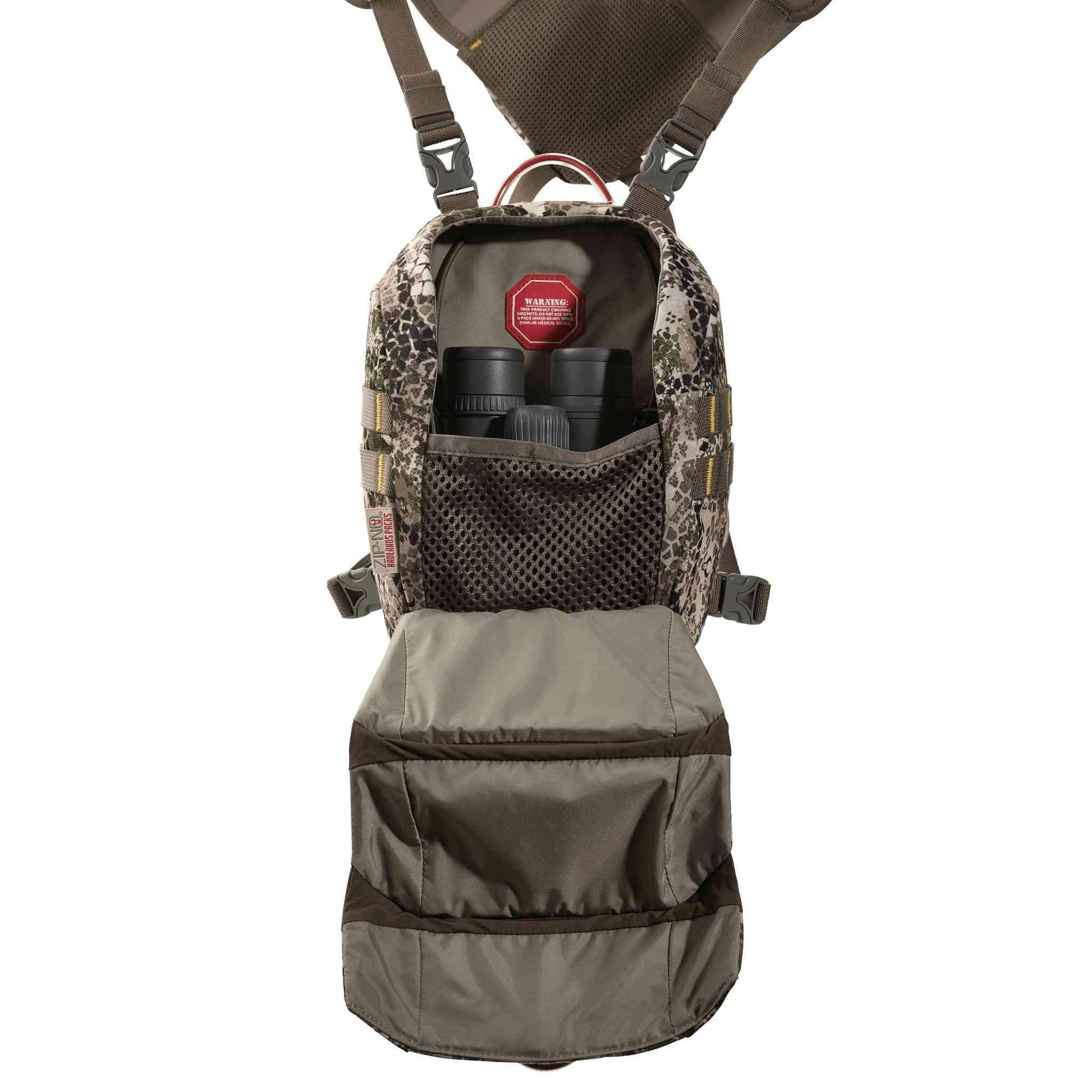 You expect a lot from those plus-size binos you carry. Likewise, you’ll get everything you want and more from the Bino X, Badlands' biggest bino case. It combines our Zip-No™ magnetic seal with Progressive Opening technology to expose only as much of the case’s inner treasures as the job requires. And because bigger binos mean heavier binos, our oversized shoulder straps move the weight off your neck for all-day comfort. That's plus-sized Badlands performance.